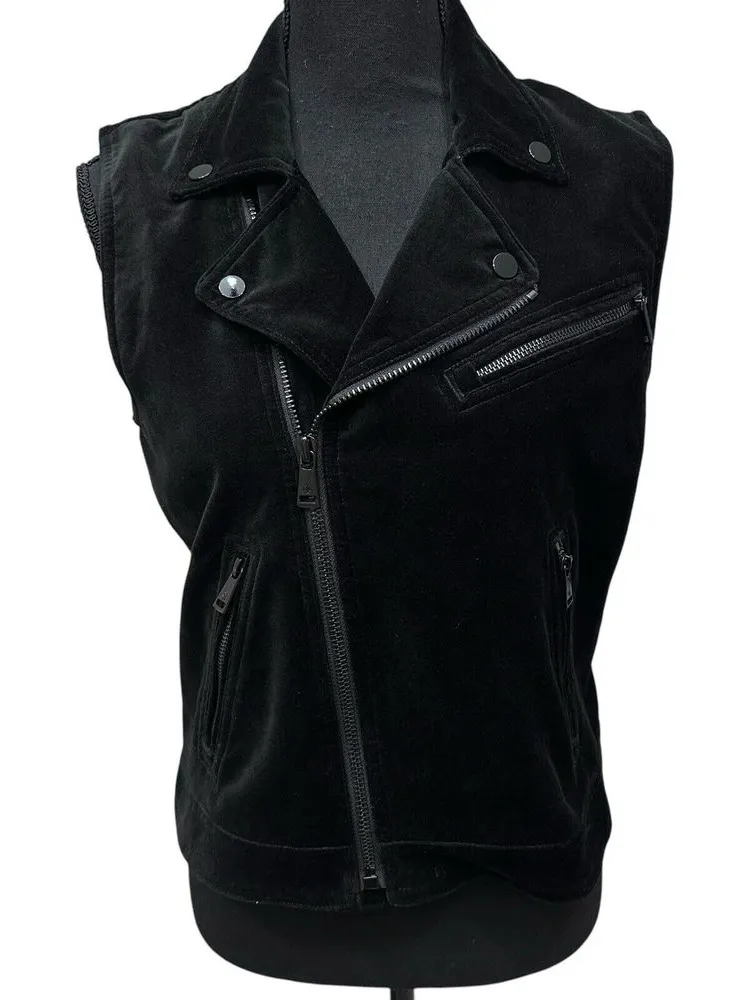 Lauren Ralph Lauren LRL Black Velvet Zip Front Moto Vest Women's Size M Petite Vest is in good preo... Show more