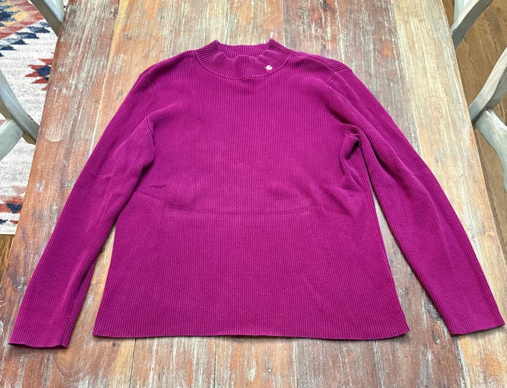 This is a pre-owned women's Lauren Ralph Lauren mock neck sweater in a vibrant fushcia color, size 2... Show more