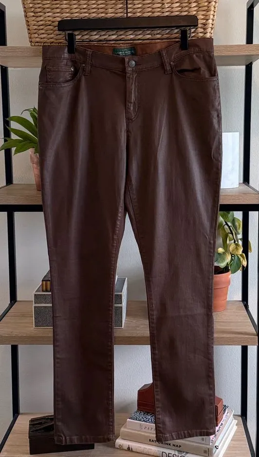 EUC- no wear to note. 97% Cotton, 3% Elastane mid-weight waxed denim fabric. 5 functional pockets.... Show more