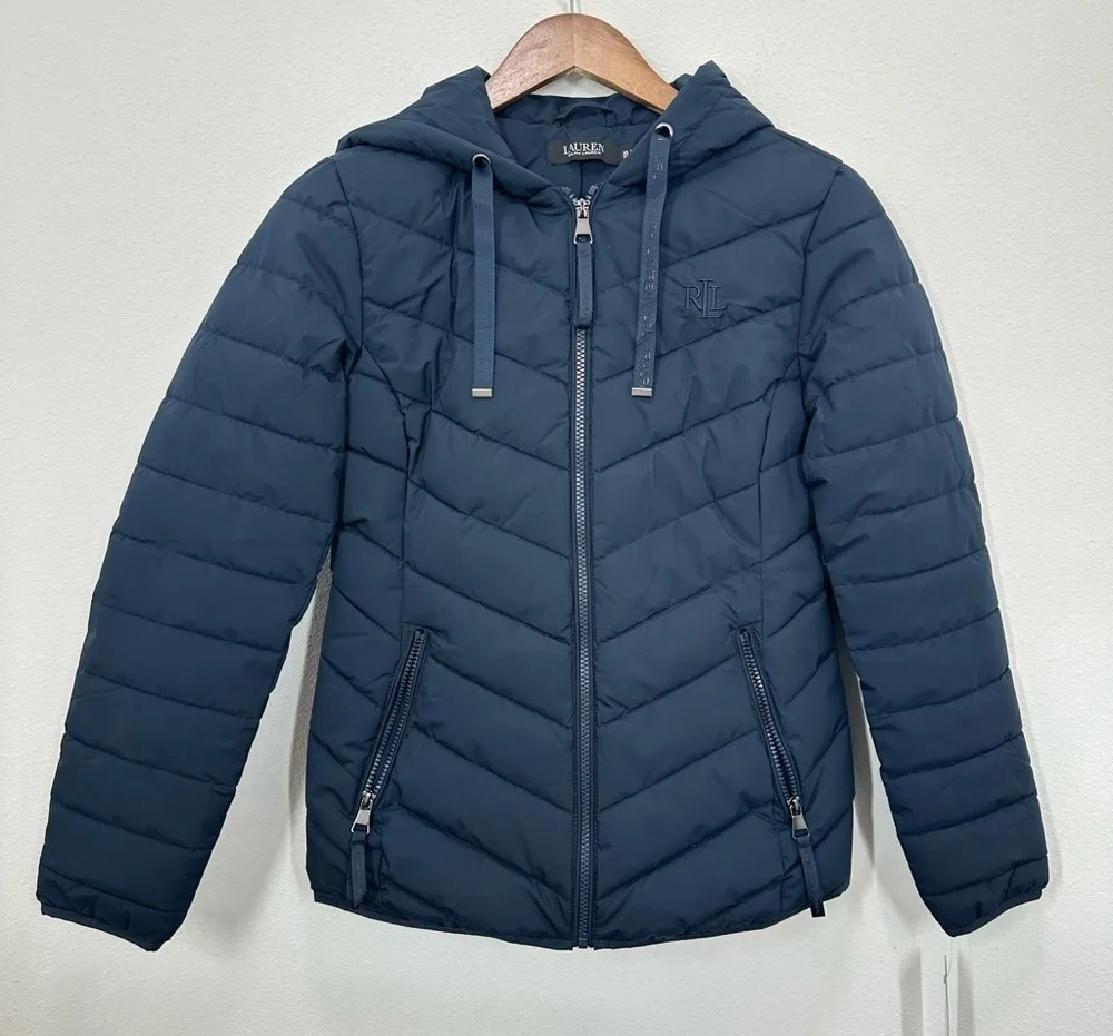 Lauren Ralph Lauren Navy Blue Women's Hooded Puffer Coat Size XS NWT Apres Ski Brand New with Tags i... Show more