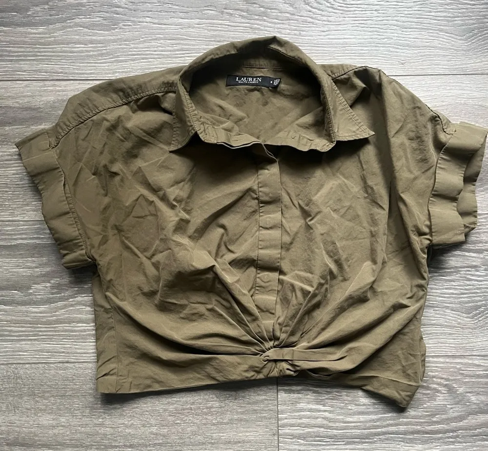 Lauren Ralph Lauren LRL 100% cotton top. Olive green. Short sleeve. Cropped. Bunched hem detail. Siz... Show more