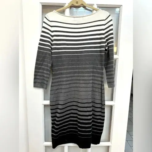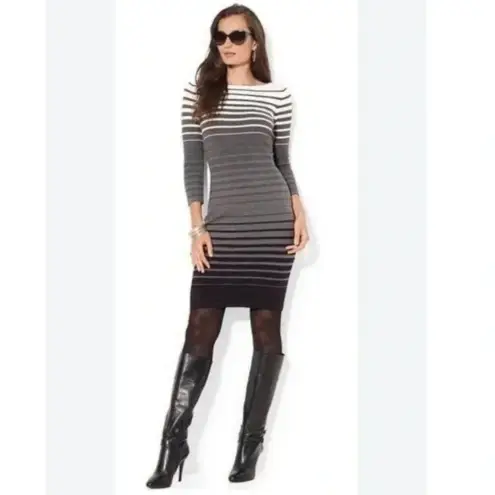 Lauren Ralph Lauren | Grey White Black Striped Long-sleeve Sweater Dress Size M Great preowned con... Show more