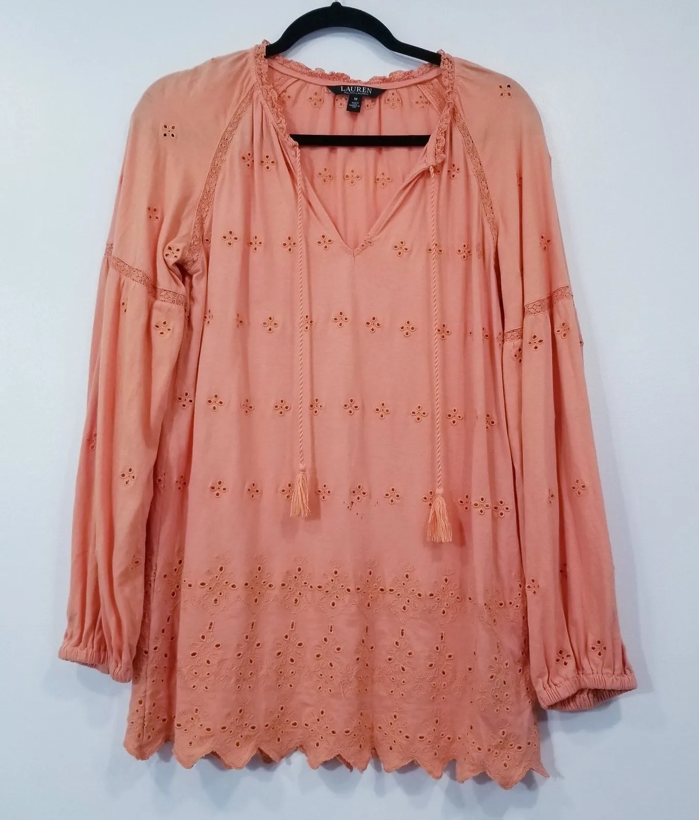 Elevate your wardrobe with this stunning LAUREN Ralph Lauren eyelet tunic blouse! The vibrant orange... Show more