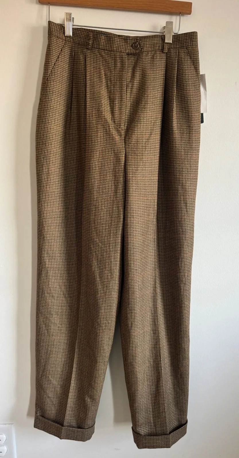 Keywords: houndstooth pants, wool blend trousers, petite career wear, classic tailoring, business casual, smart casual, sophisticated style, camel trousers, work pants, petite fashion, tailored pants, office attire, autumn fashion, Ralph Lauren petite