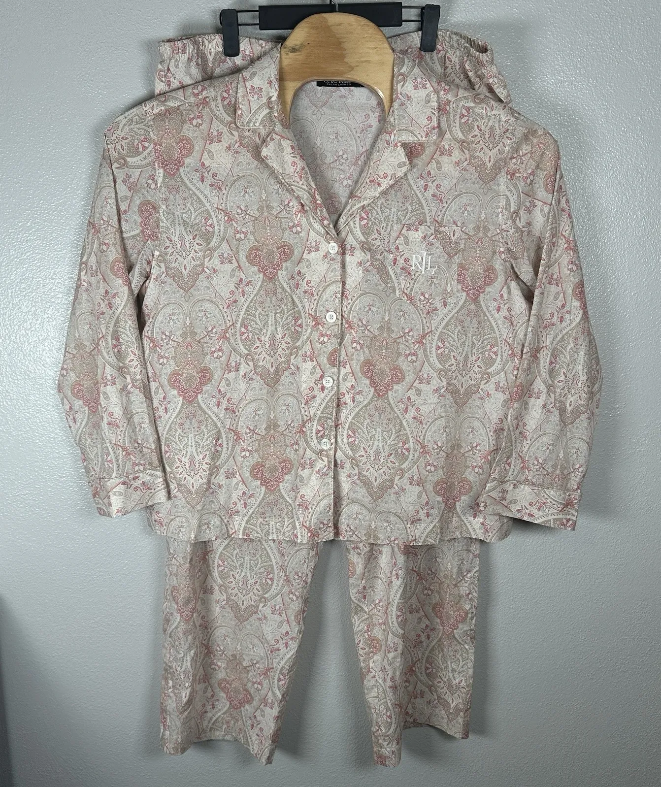 Lauren Ralph Lauren Pink Floral Paisley Pajamas Set Button Up Top Pants Size XL - $34 - From HannahBThrifts