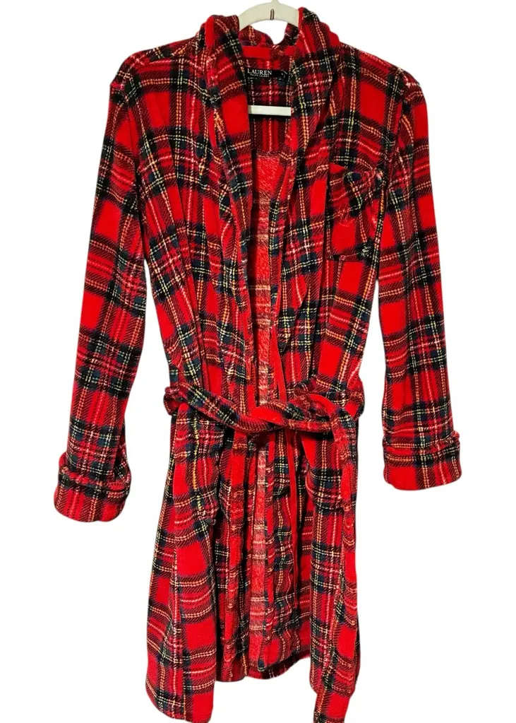 Lauren Ralph Lauren Red Green Plaid Christmas Belted Fleece Robe Size Medium - $53 - From Nacole
