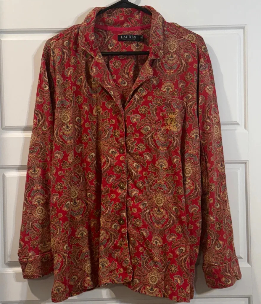 Lauren Ralph Lauren Red Paisley Pajama top Womens Plus Button Top 2X - $38 - From Tracy