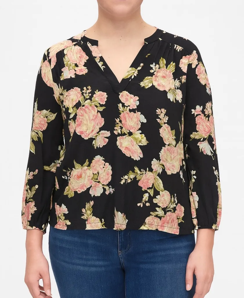 Lauren Ralph Lauren Shirt Black Pink Dark Floral Print Blouse Top Size Large Women's Size Large Co... Show more