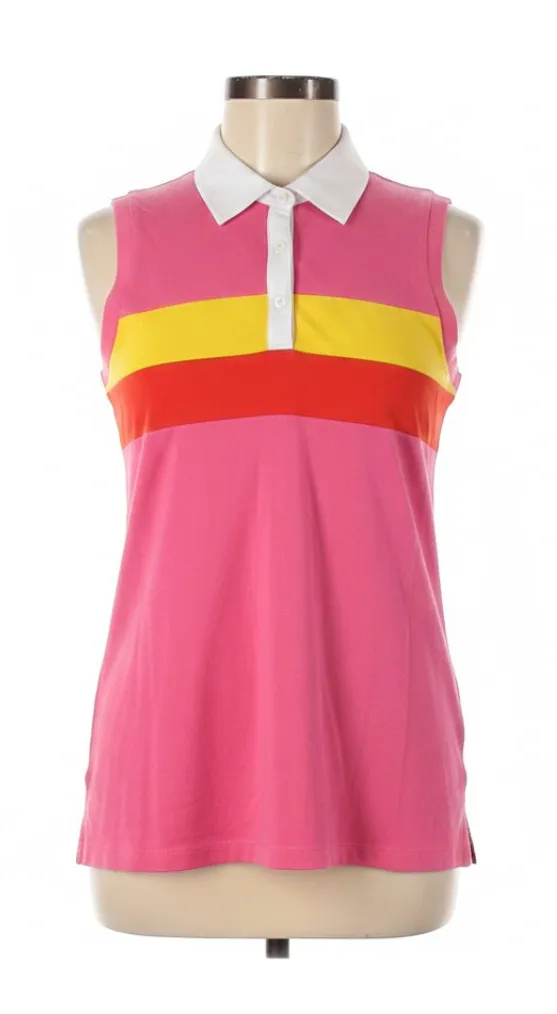 Womens Size Medium LRL Active Sleeveless 1/4 Button Polo Spread Collar Cotton Elastane Blend Colorf... Show more