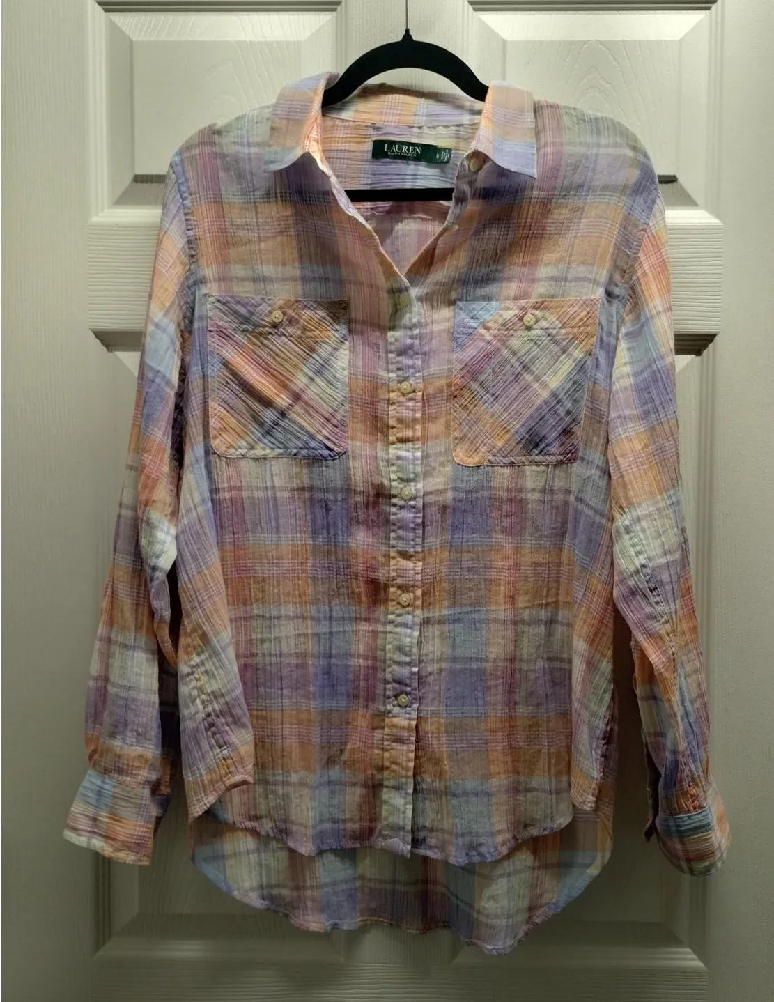 Roll-Tab Crinkled Plaid Great preowned condition, see photos. 23 inches pit to pit. 27 inches long... Show more