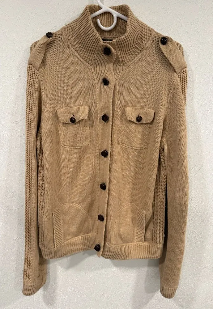 Stylish Lauren Ralph Lauren tan button-up cardigan sweater, women’s size XL, in excellent used condi... Show more
