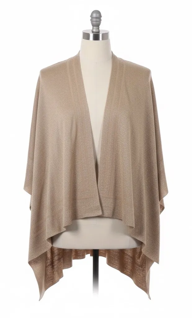black label, metallic knit, neutral wrap, oversized poncho, reversible accessory, lightweight, elega... Show more