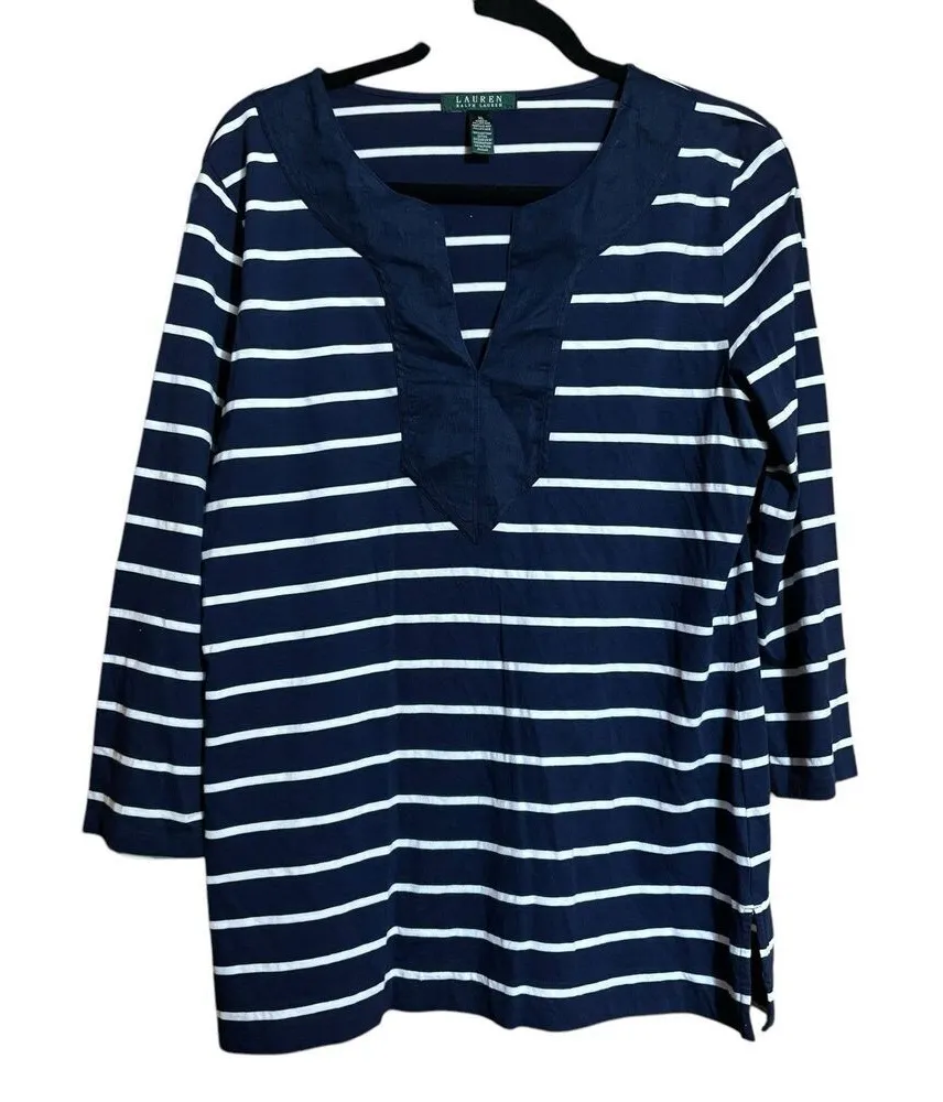 Dive into the nautical trend with this Lauren Ralph Lauren Tunic Top, designed with a chic multicolo... Show more