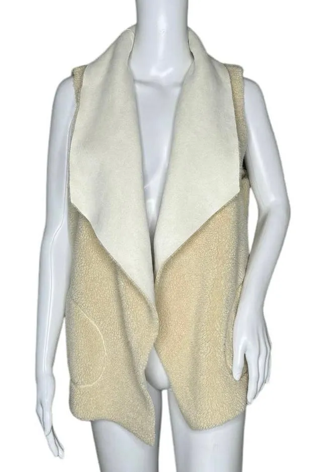 Women’s Size Medium Color: Winter Cream Sleeveless Open Front Pockets Draped Generous Lapel Fau... Show more