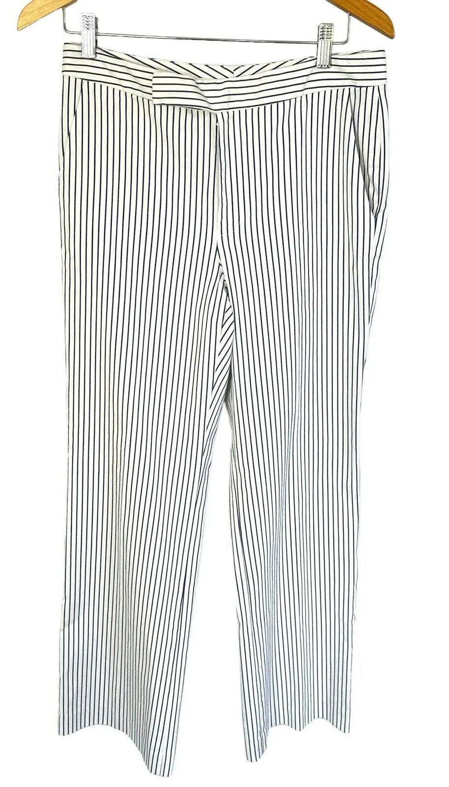 Lauren Ralph Lauren White Blue Striped Straight Pants Stretch High Rise Womens Size 8 Approximate f... Show more