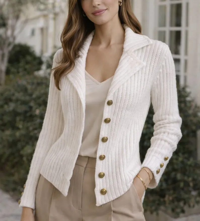 Ralph Lauren white cardigan, ribbed cardigan sweater, gold button cardigan, crest button sweater, women’s cotton cardigan, classic white sweater, tailored cardigan, preppy cardigan sweater, workwear sweater, office cardigan, luxury knit sweater, women’s cardigan size small