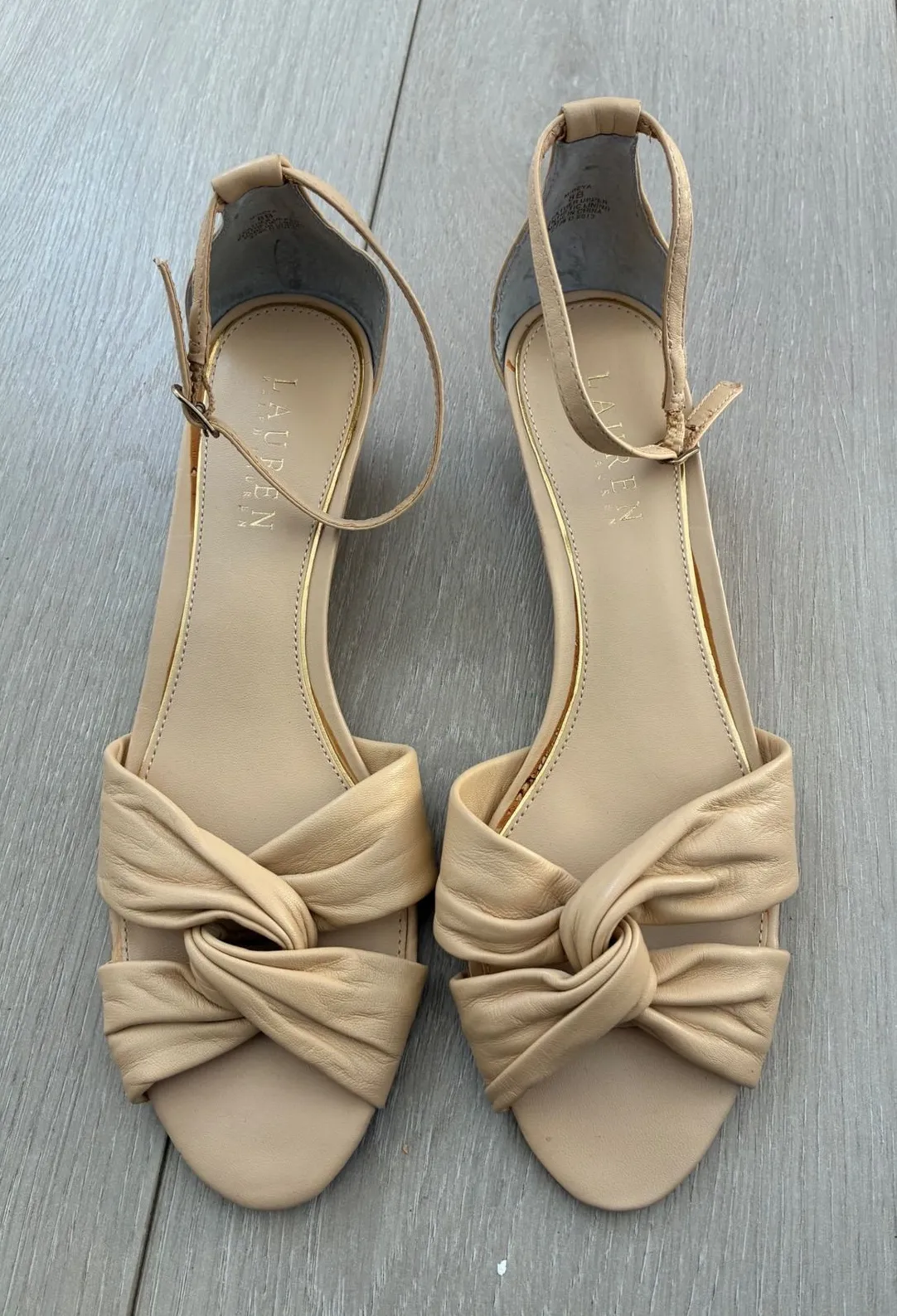 Step into sophisticated comfort with these exquisite Lauren Ralph Lauren wedge sandals. The supple... Show more