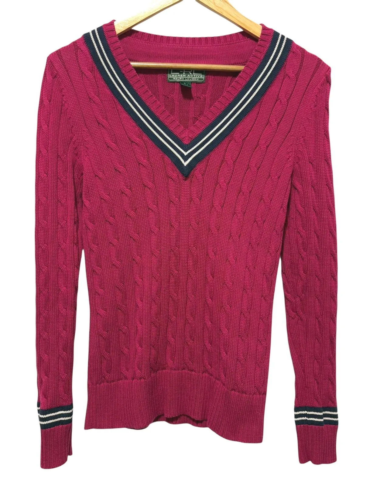 Lauren Ralph Lauren Women Sweater L Pink Cable Knit V Neck Preppy Academia Y2K Great Pre-Owned Cond... Show more