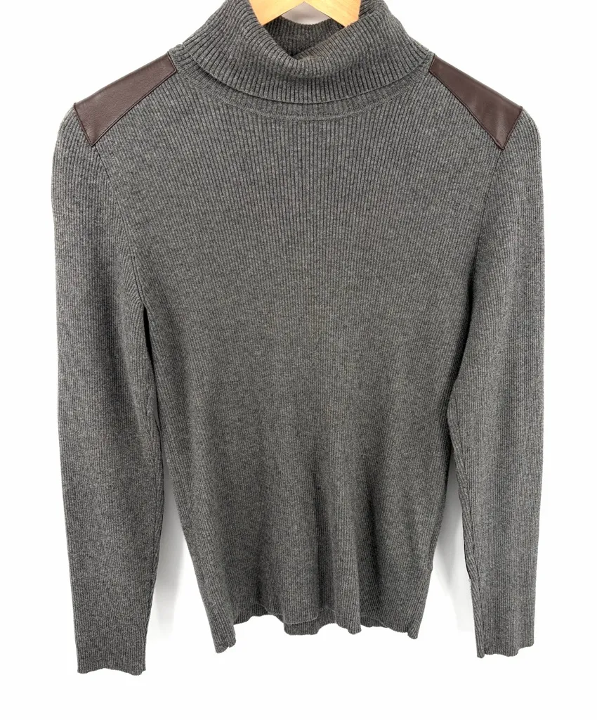 Lauren Ralph Lauren black label women’s faux leather trim ribbed turtleneck pullover sweater Size L... Show more