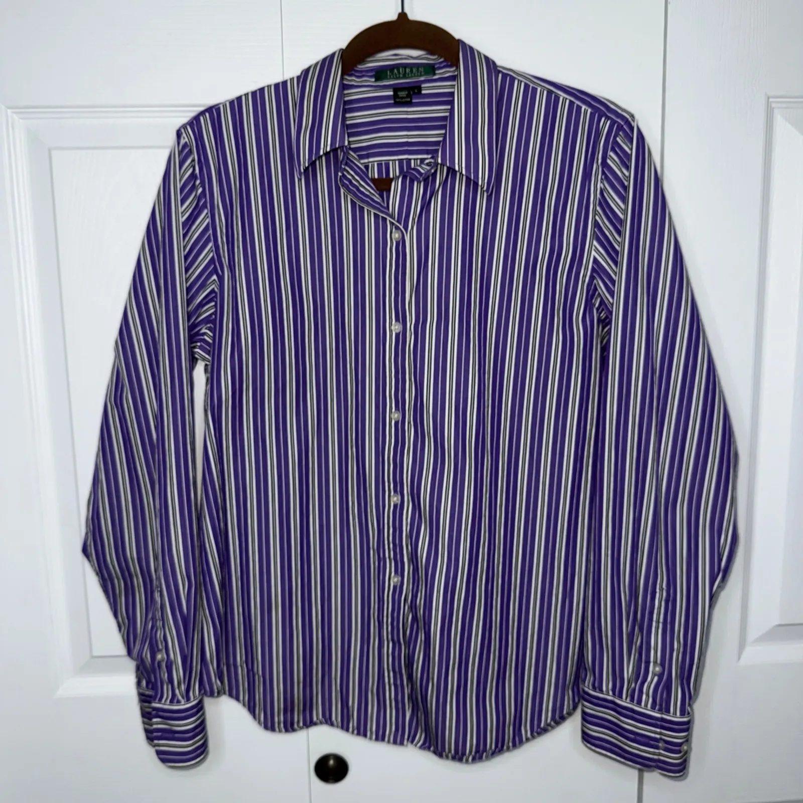 Excellent Like New condition LAUREN RALPH LAUREN button-down shirt. The striking vertical stripe p... Show more