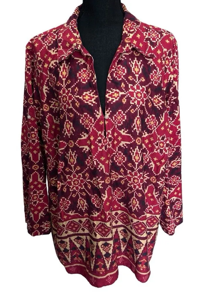 Lauren Ralph Lauren Women's Size 3X Lawn Gold Medallion Ikat Shirt Top Aztec Top sleeves can be wor... Show more