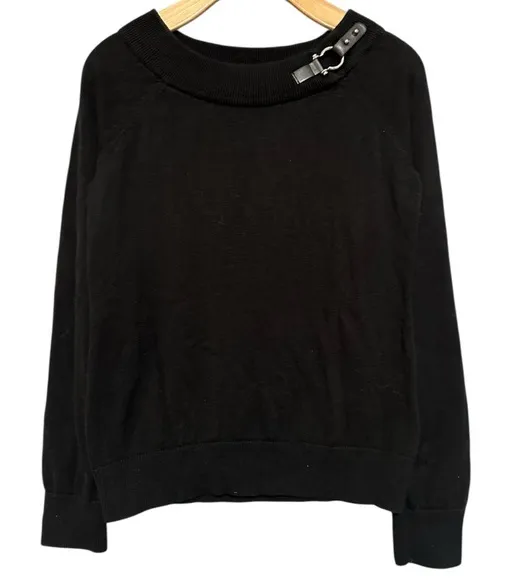 Lauren Ralph Lauren Women’s Size Medium Black Boatneck Silver Horse Bit Sweater
