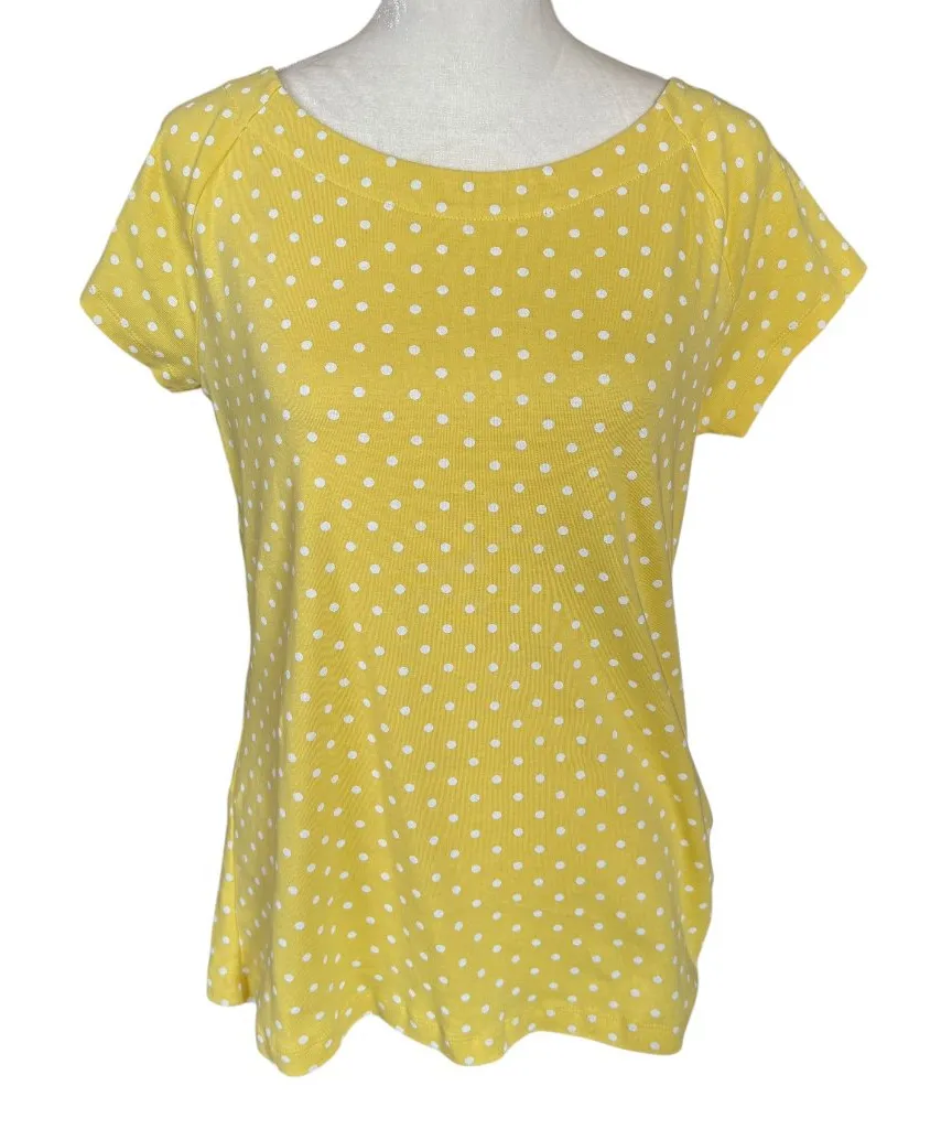 Women's Lauren Ralph Lauren yellow with white polka dots short sleeve top, size XL. This is a stret... Show more