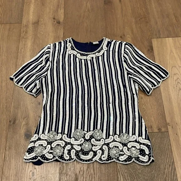 Vintage Lawrence Kazan Beautiful Beaded Sequin Blouse Top Shirt Silk Size L Size L - $32 - From Marisol