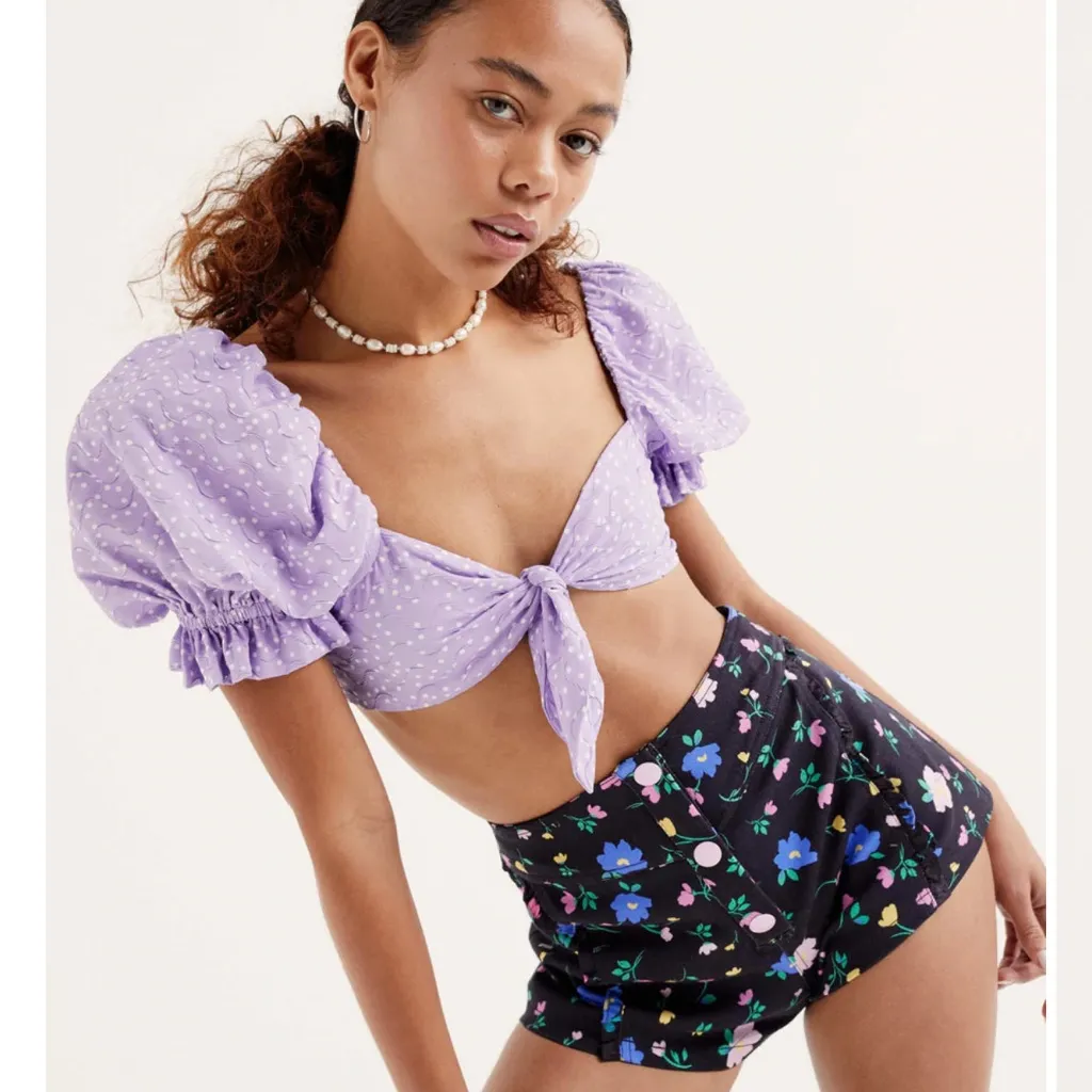 Chic and stylish lavender crop top with puff sleeves. Perfect for a trendy look. $98 MSRP sold out d... Show more