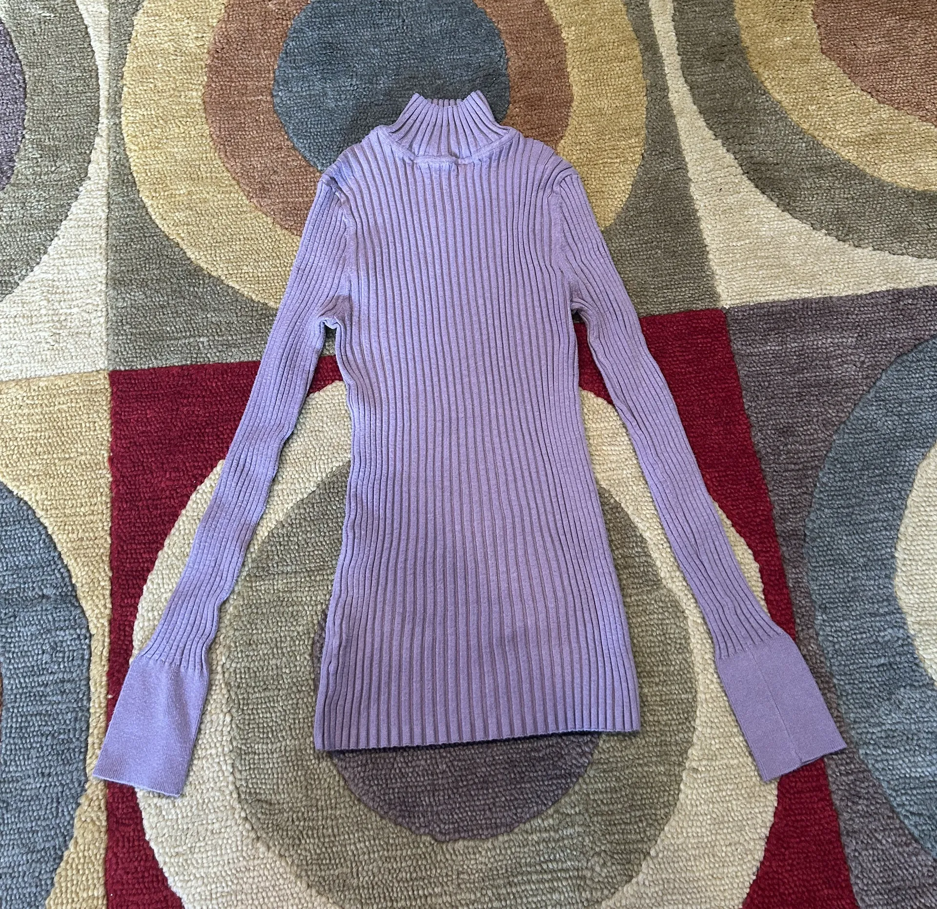 Lavender Purple Ribbed Mock Neck Slim Fit Sweater Top Wide Sleeve Women’s XXS - $17 - From Emily