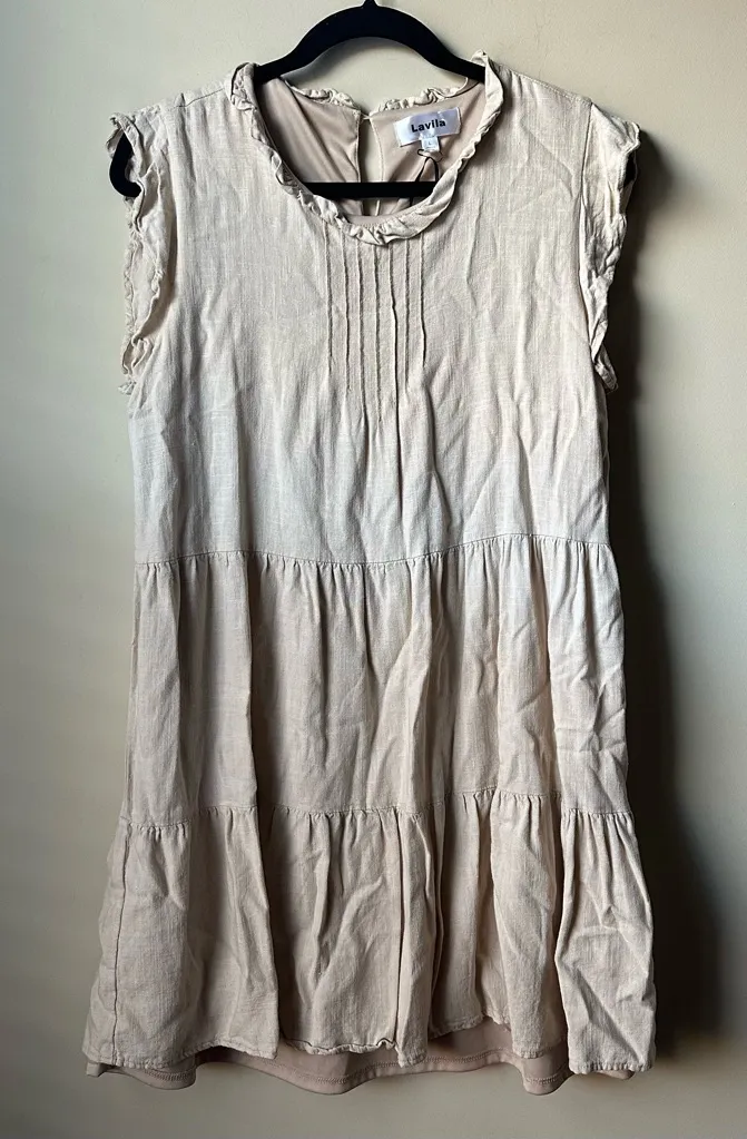 Lavila ruffle-sleeve tiered mini Dress Linen Blend Minimalist Boho Babydoll Size L - $47 - From Kathryn