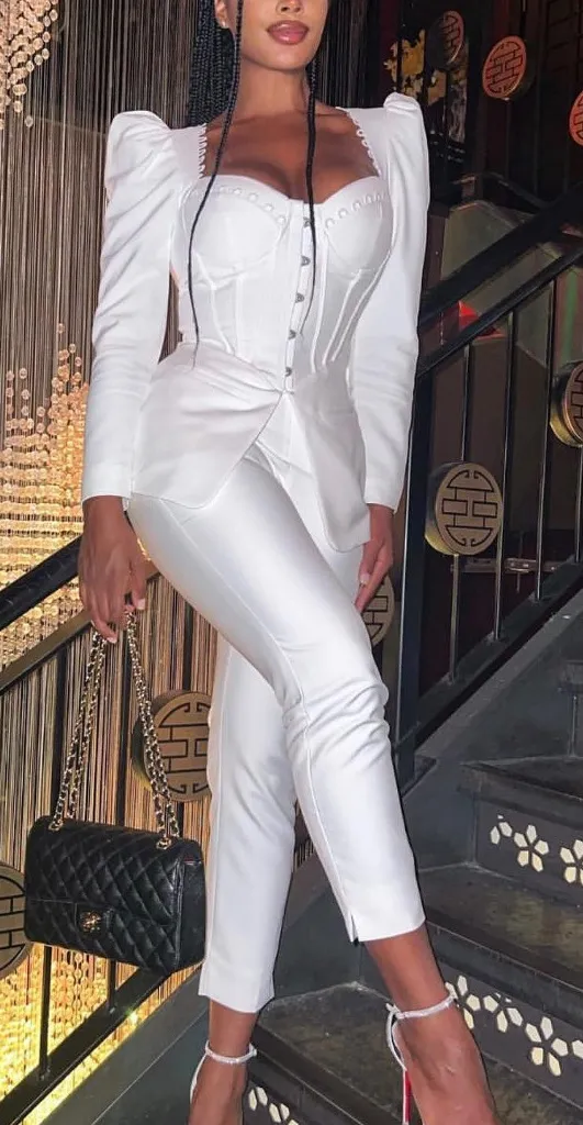 DESCRIPTION Our bestselling tapered trousers are back for summer in an elegant white. Team with the statement one shoulder cape jacket for ultimate chic. Great for bridal events, such as a bachelorette, rehearsal dinner, bridal shower, elopement, etc! Size US 10/UK 14. Reasonable offers welcomed ✨ CONDITION NWT - new with tags, never been worn. Some minor shop dust throughout, will come out in the wash! MATERIAL 90% Polyester, 10% Elastane MEASUREMENTS Waist - 15” Inseam - 26” Rise - 12.5” (Please note: all measurements are approximate. Taken flat across the article of clothing)
