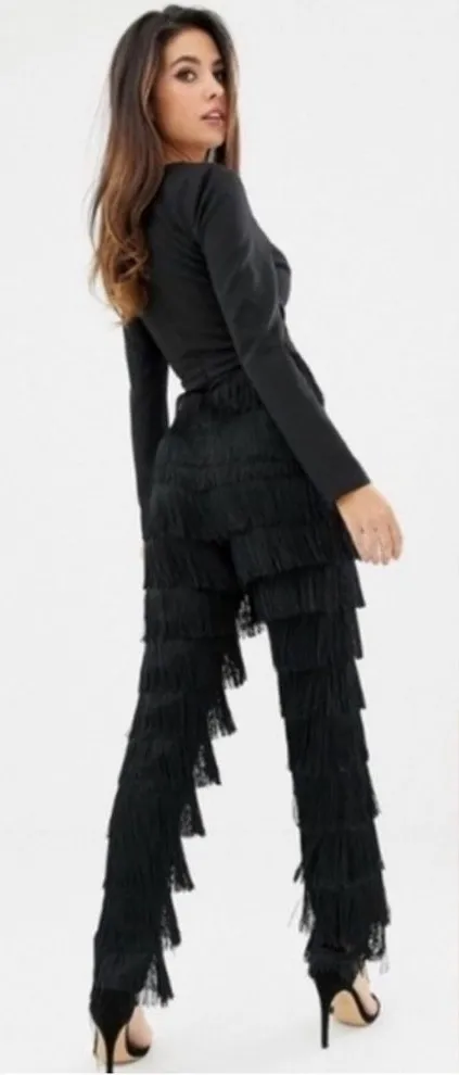 Lavish Alice NWT Black Tiered Fringe Pants XS - $100 New With Tags - From Lorrie
