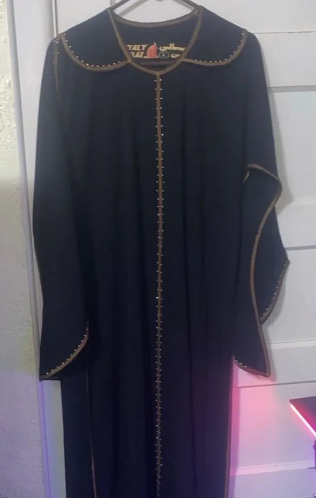 This piece is extremely long and has a very long hood as well, it’s very smooth to the touch. It’s missing a couple rhinestones throughout as shown and then the hood has a whole side of missing rhinestones. It is missing some stitching down at the bottom. Perfect for your next rave or festival trip! -Black -Rhinestones -Hooded -Maxi -Long Sleeve -Festival/Rave