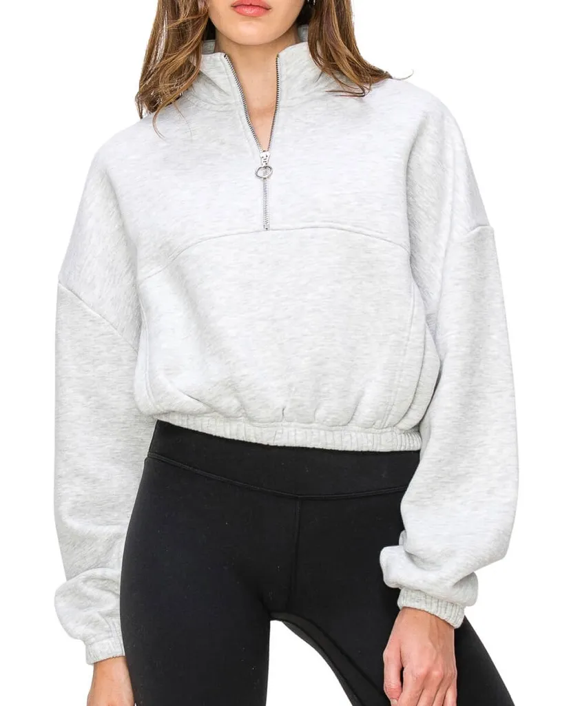 Lazy Sunday Half Zipped Cropped Sweatshirt Women’s Size Large Heather Gray In good condition! #l... Show more