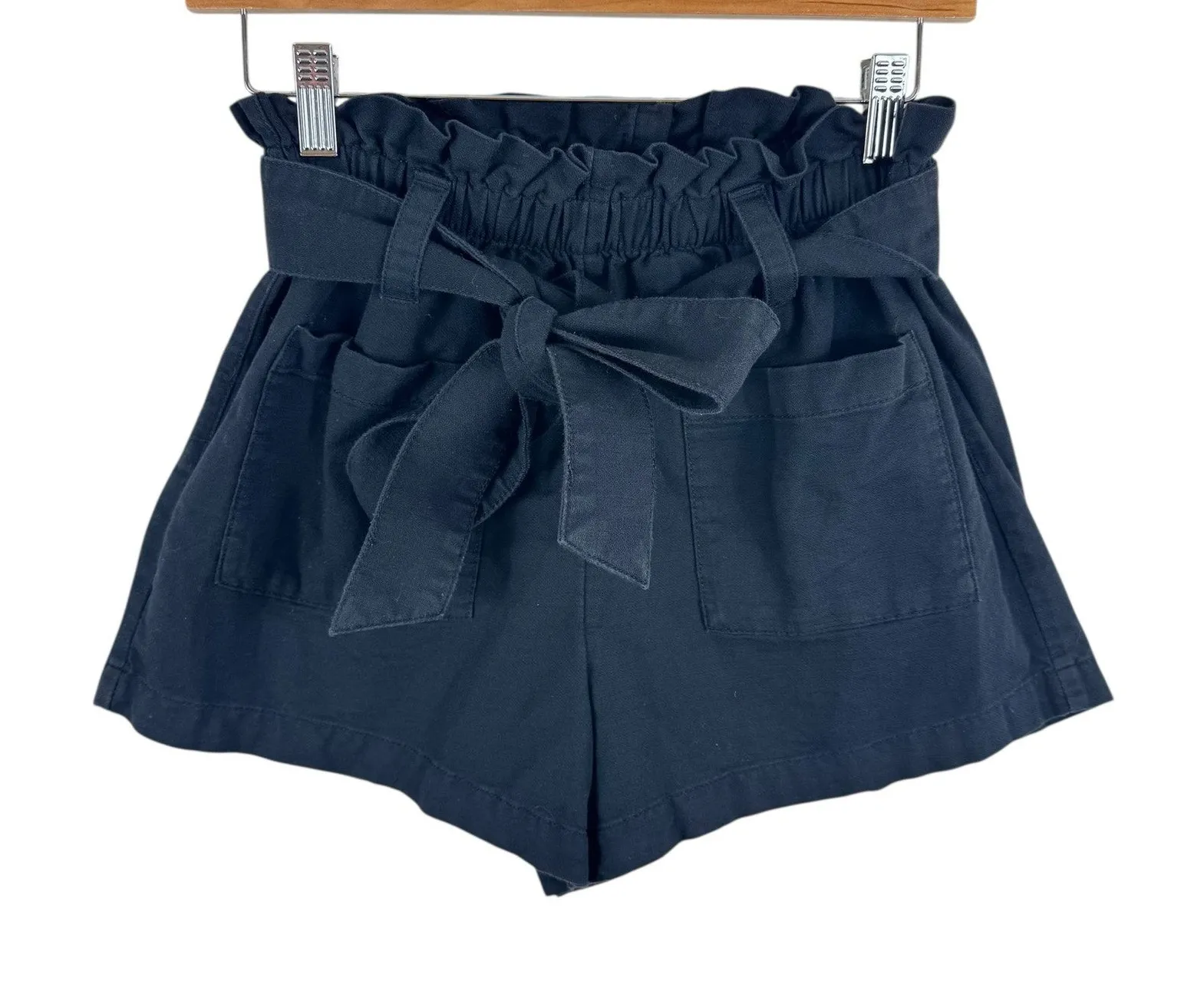 Excellent preowned condition. LC Lauren Conrad Black Cotton Blend High Rise Belted Paperbag Shorts.... Show more