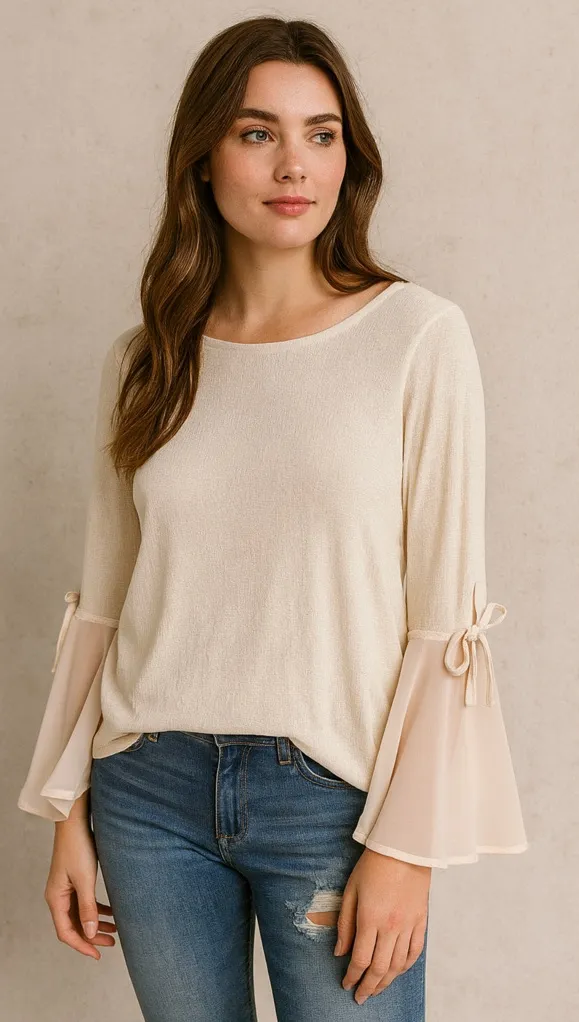 This beautiful cream blouse adds an elegant, feminine touch to any outfit. The standout feature is t... Show more