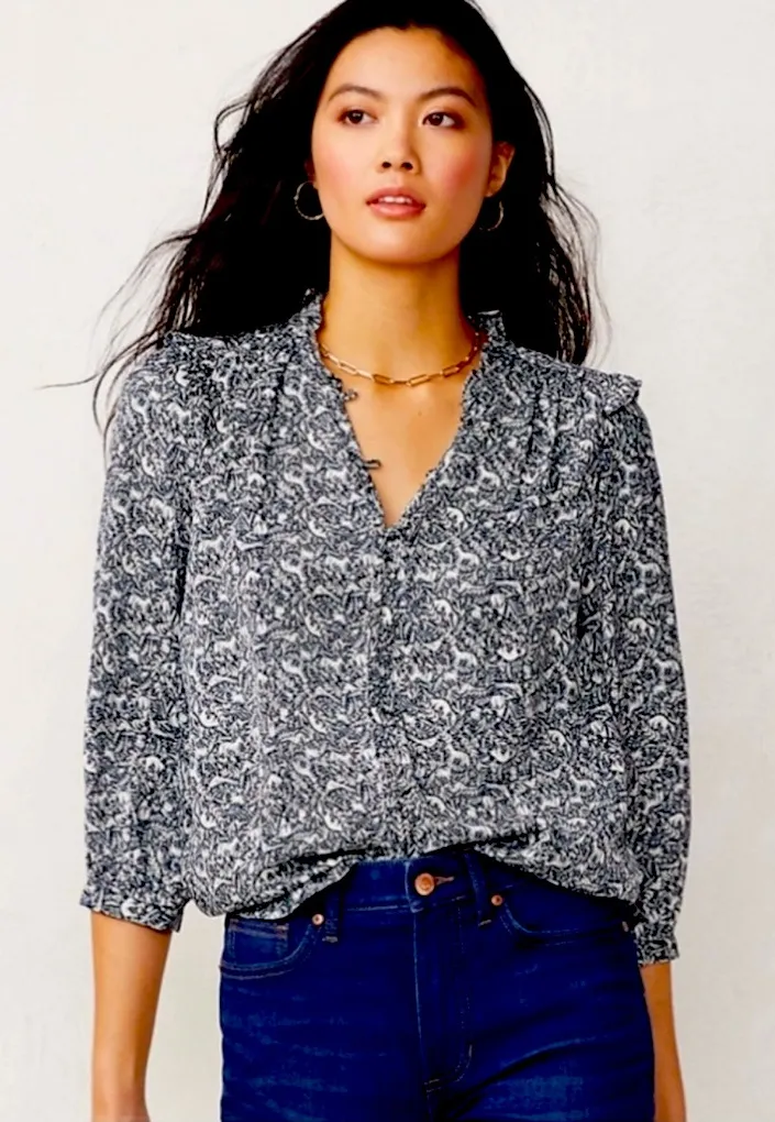 The Lauren Conrad Blue Blouse Top in size Large features a charming fox and forest animals print, pe... Show more