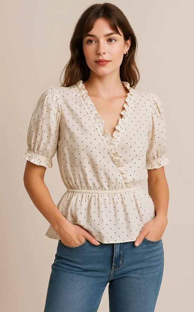 This Lauren Conrad LC Ruffle Polka Dot Blouse captures timeless femininity with a hint of vintage ch... Show more