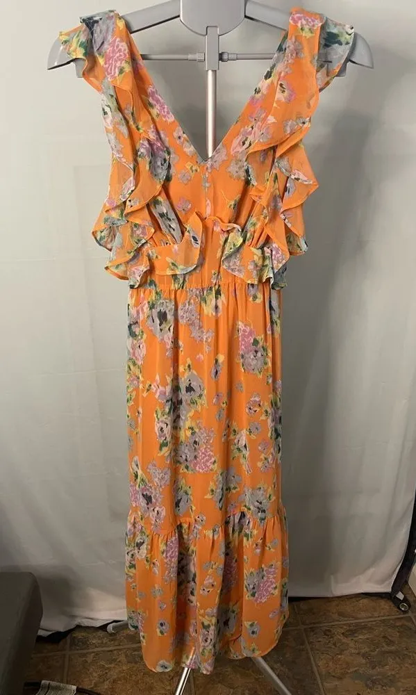 Orange floral Tie back dress Size small Perfect for a wedding or baby shower EUC offers welcome ďż˝... Show more