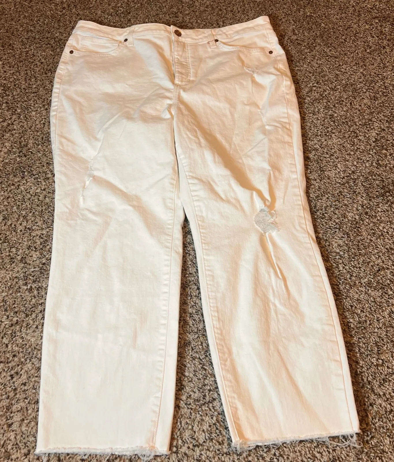 Keywords: LC Lauren Conrad, White Jeans, Slim Straight, Cropped Jeans, Distressed Jeans, Plus Size Jeans, Women's Jeans, Denim, Casual, Fashion, Contemporary, Size 18W, Frayed Hem, Ripped Jeans