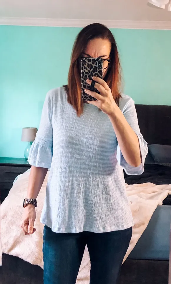 Elevate your everyday style with this charming light blue textured top. Its delicate crinkle fabric... Show more