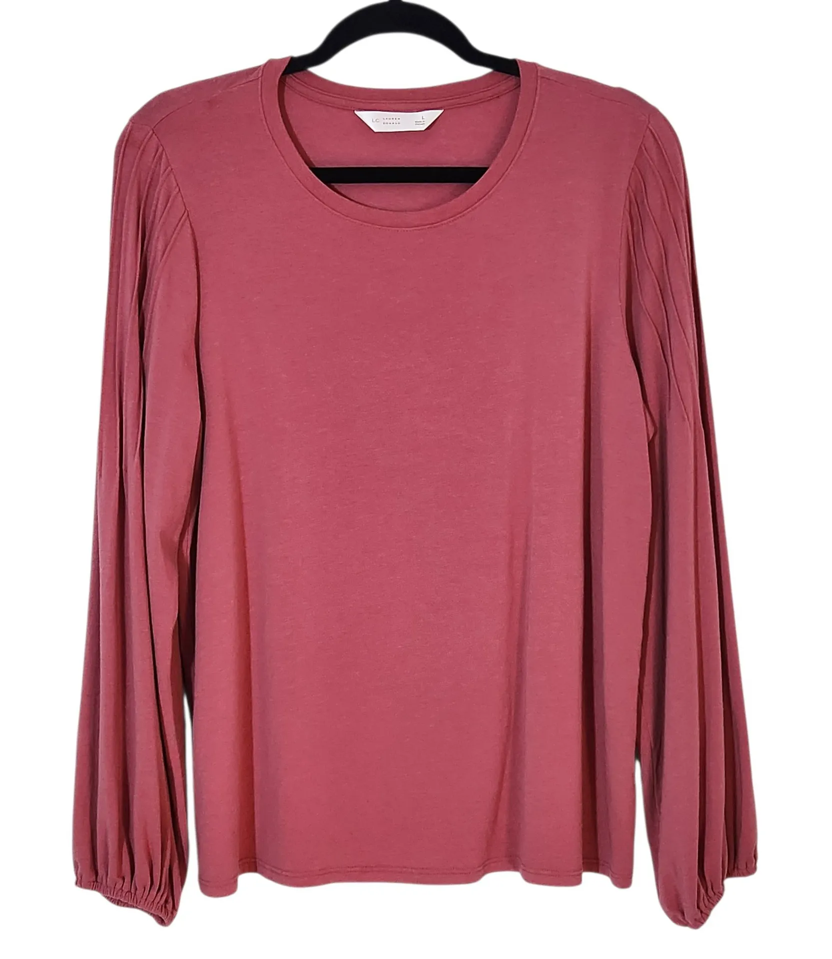 This Lauren Conrad pink tee features full length sleeves with delicate pintuck detailing that adds a... Show more