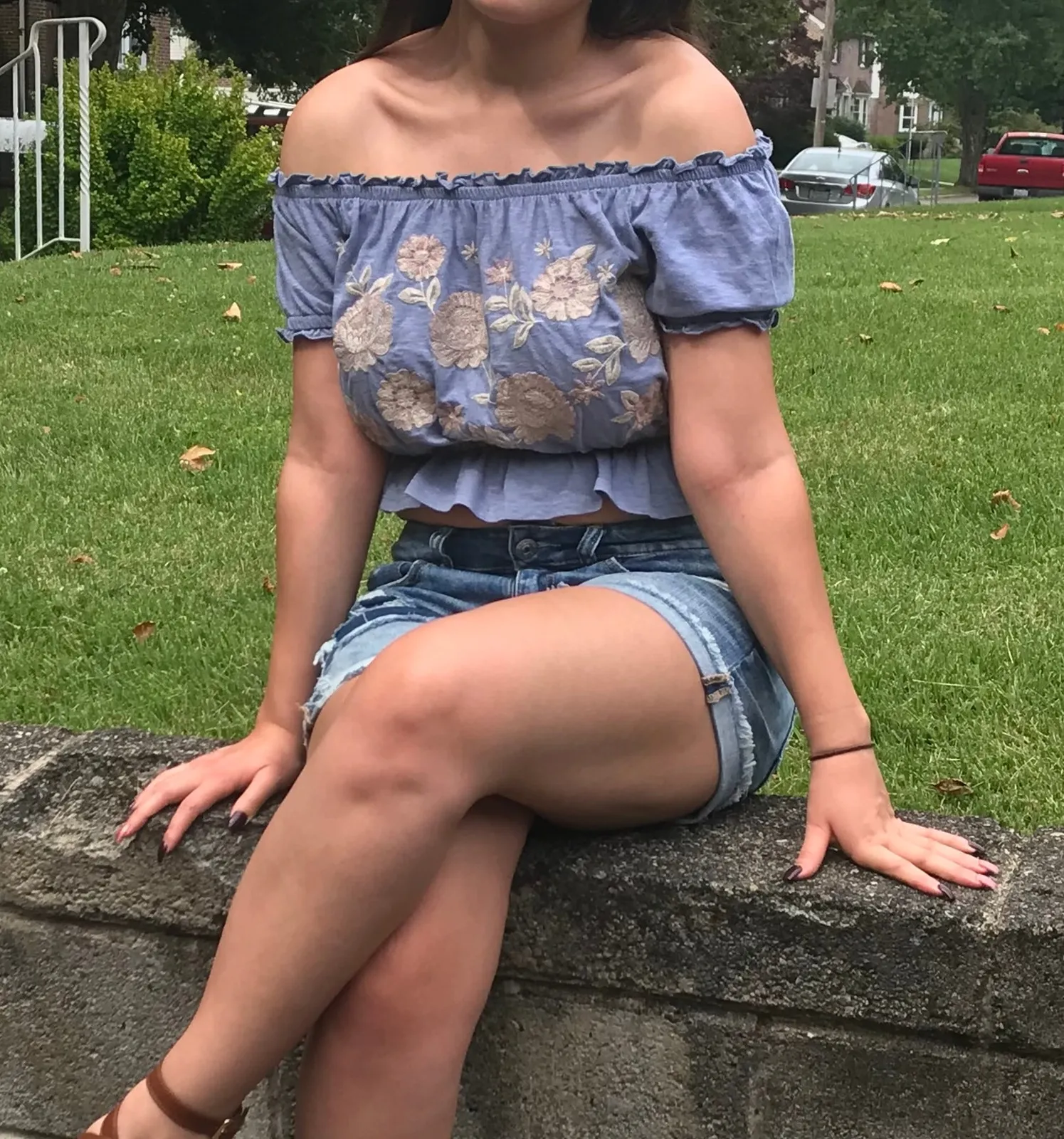 Worn twice American Eagle off shoulder floral short sleeve top. Ruffle hems with a peplum bottom. st... Show more