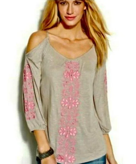 Tan and pink off shoulder floral top size small - $16 - From Upstyle