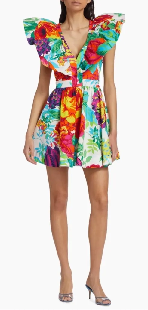 LDT Evelyn Floral Ruffle Cottom Poplin Mini Dress Size 8 V neck Back zip closure Flutter sleeves S... Show more
