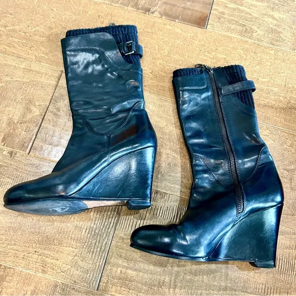 Le Bon Marché Women’s Wedge Boots Adjustable buckle Black Size 6 Excellent condition Business casual professional workwear cute girly event evening date holiday spring summer fall winter
