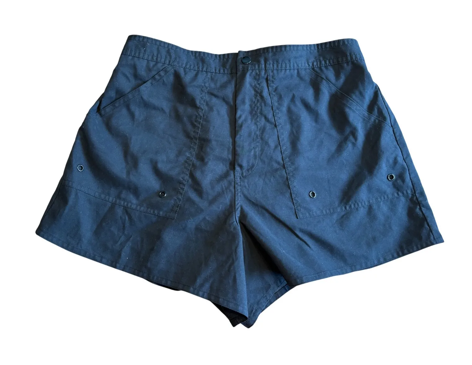 Breezy comfort awaits with these versatile swim shorts, ready for any waterside adventure. These shorts feature a comfortable elastic waistband, ensuring a snug and flexible fit. The convenient front pockets offer practical storage for small essentials, while the quick-drying fabric keeps you comfortable both in and out of the water. Eyelet details add a touch of style and enhance breathability. Perfect for a day at the beach, a casual swim in the pool, or a relaxed vacation getaway. Keywords: swim shorts, womens shorts, black shorts, elastic waist, pockets, quick dry, beachwear, swimwear, vacation, summer, pool, le cove, polyester shorts