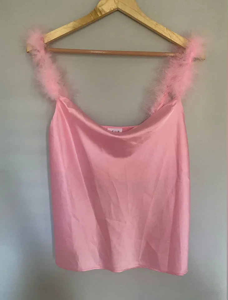 Gently worn Le Lis Size Small Pink satin top Pink feather straps *measurements are approxi... Show more