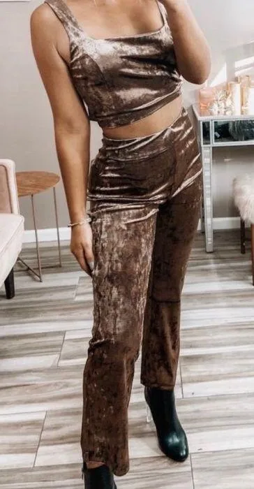 in love with this set! worn once! like new condition! gorgeous brown velvet with black checkered det... Show more